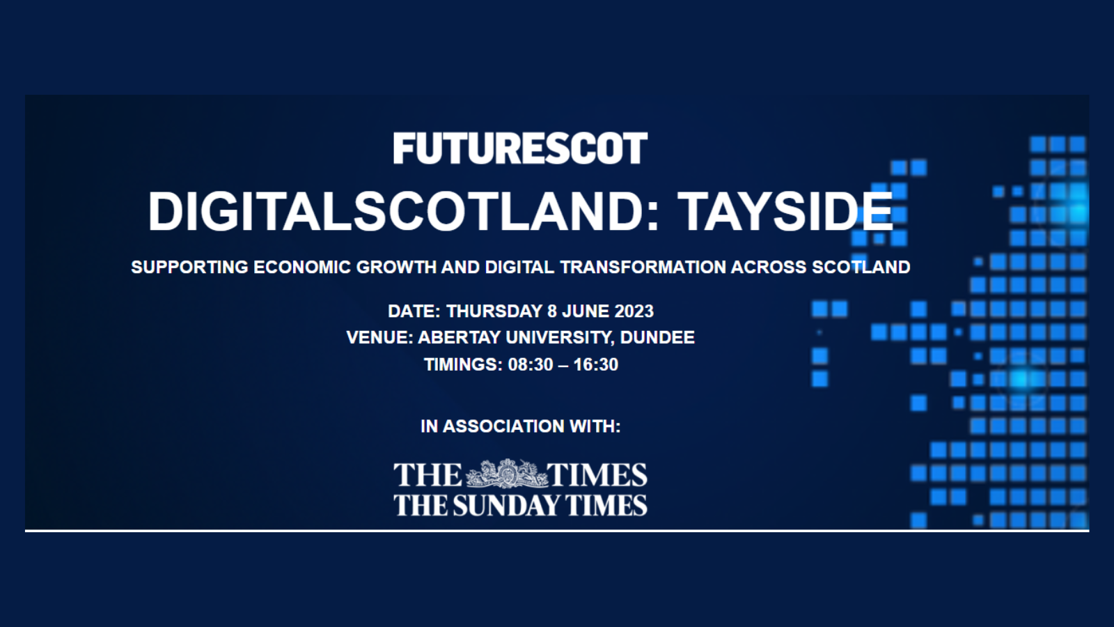 DigitalScotland: Tayside, supported by The Times Scotland, will bring together policy makers, business leaders, educators and community stakeholders to explore the opportunities and challenges of economic growth and digital transformation in Tayside.